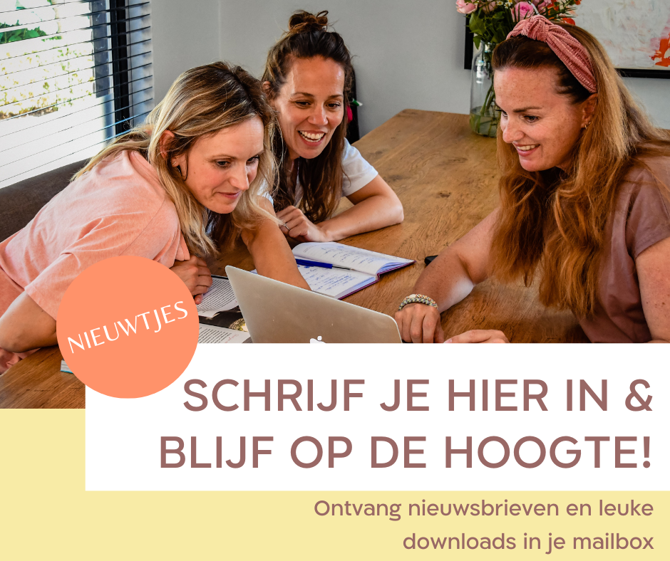 Schrijf je hier in voor de nieuwsbrief en ontvang voortaan als eerste onze updates in je mailbox. We delen regelmatig nieuwtjes, tips of leuke downloads met je.